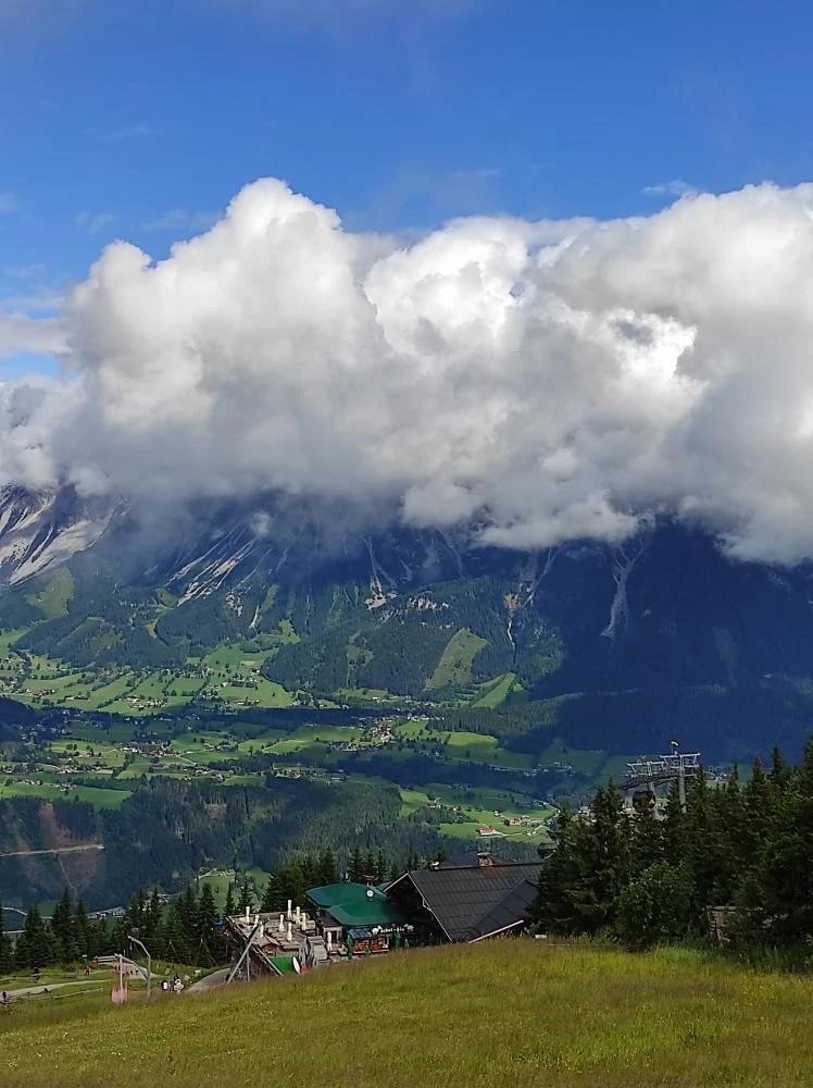 Cílem byla pohodová turistika v okolí Schladmingu a hlavním cílem byl Dachstein. Před odjezdem mě přepadla obava, zda jsem nepřecenila své síly. Alpy jsou přece jen něco jiného než naše Beskydy. Ale při přejezdu Ostrava - Mikulov mé obavy mírně ustupovaly - přistupovali účastníci zájezdu viditelně starší a já si řekla, tak to přece musím dát. No nakonec jsem dala vše (i s několika kotrmelci při jednom ze sestupů), ale hluboce jsem smekla před všemi, kteří kopce zvládali mnohem lépe a svižněji. Nejstarší turistkou mezi námi byla 80 ti letá paní!
