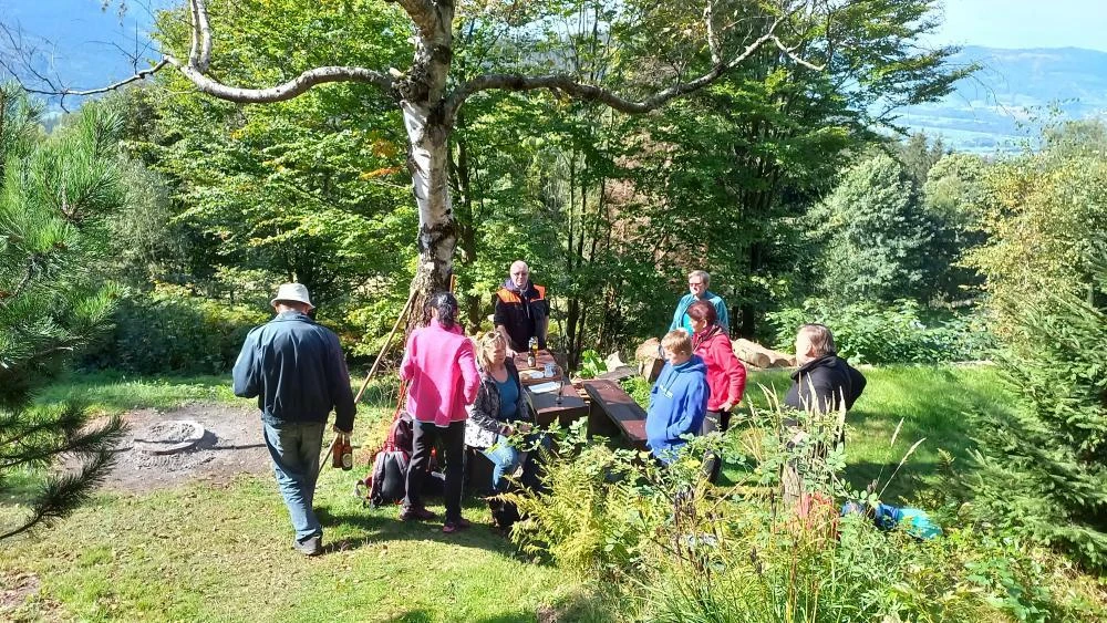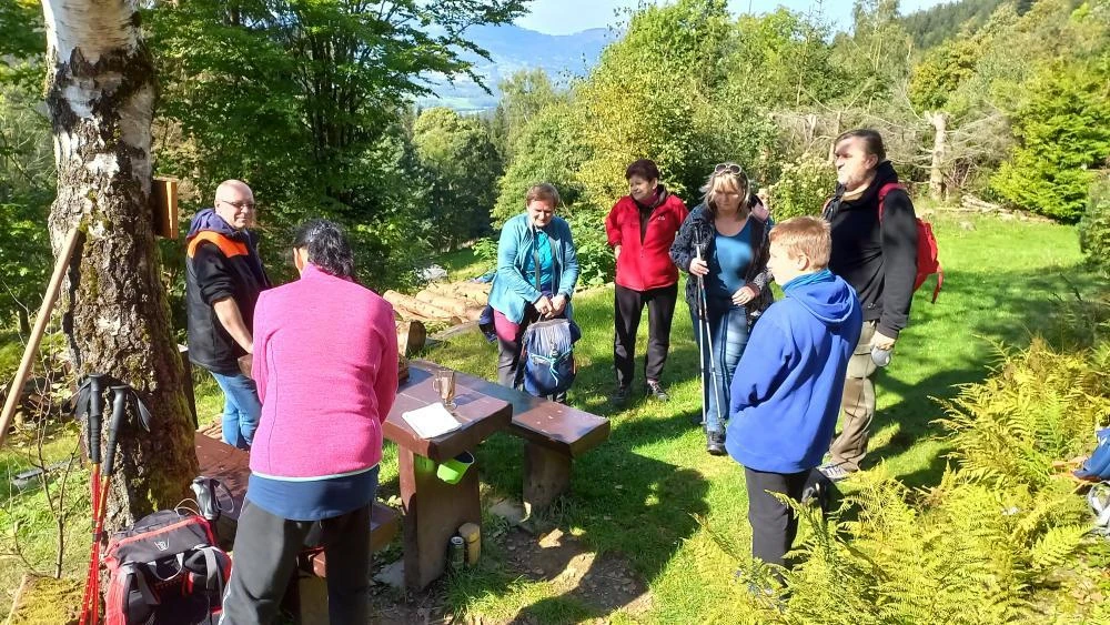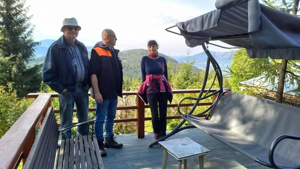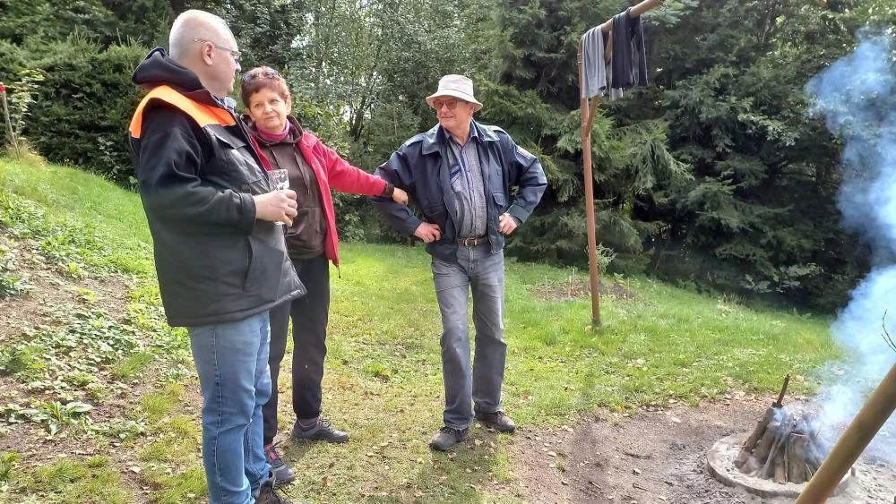 A protože opékání uzenin a trocha lahodného moku se musí nejprve zasloužit, vydali jsme se jako turisti z Ostravice vzhůru na nejvyšší vrchol Beskyd. Naštěstí pod vrcholem nás přivítal pan domácí na své základně společně s další bývalou dlouholetou zaměstnankyní Jiřkou.