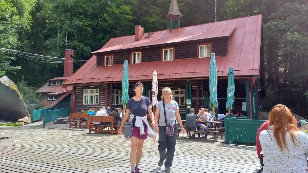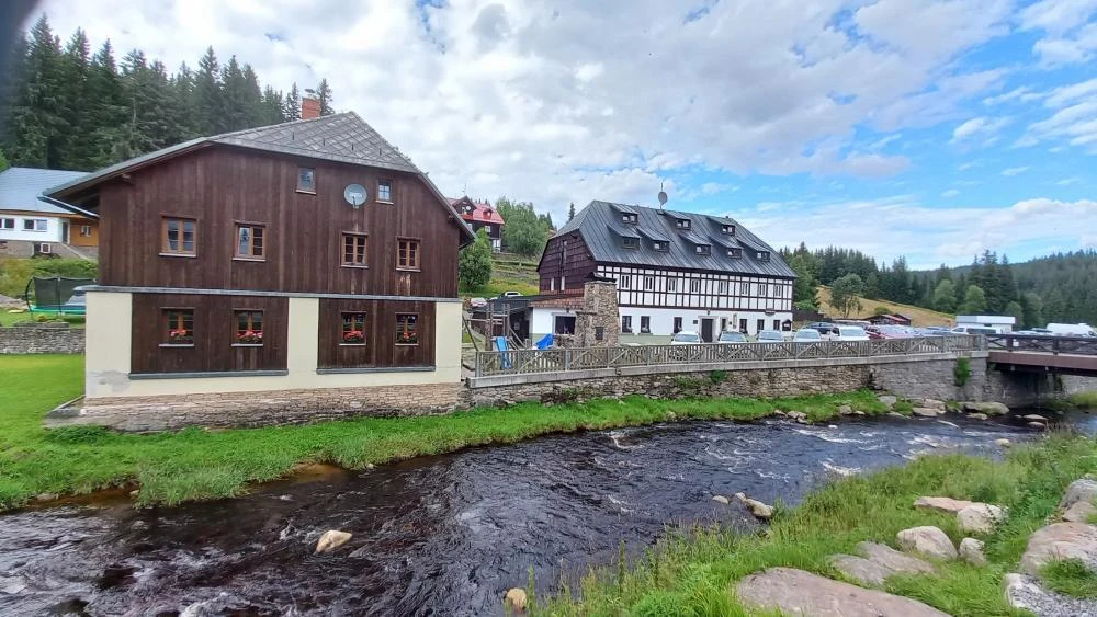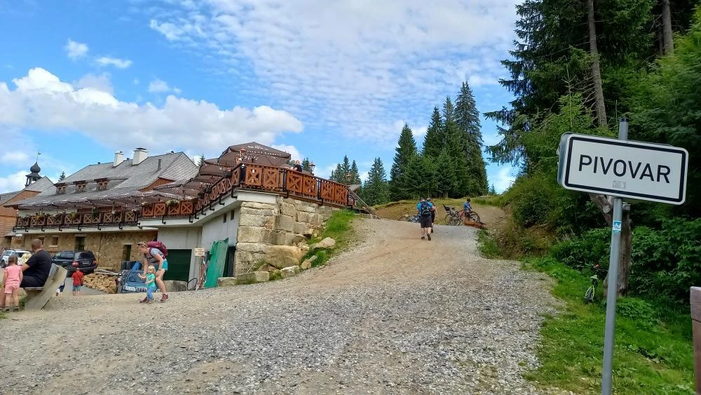 Nádherné stavení s velkou moderní terasou. Obsluha rychlá, místní pivo vydařené. Skvělé lákadlo, které je škoda minout. Také přibyla nová (nebo výrazně modernizovaná) budova s prodejnou hraček, bytových doplňků a suvenýrů. Vše ze dřeva. Konečně něco typického pro Šumavu, spojovanou již několik století se dřevem. A dárky pro vnučky byly zajištěné. Prodavač nás ujišťoval, že všechny použité barvy na hračkách jsou neškodné, že už je prodává dlouho. Věřil jsem.
