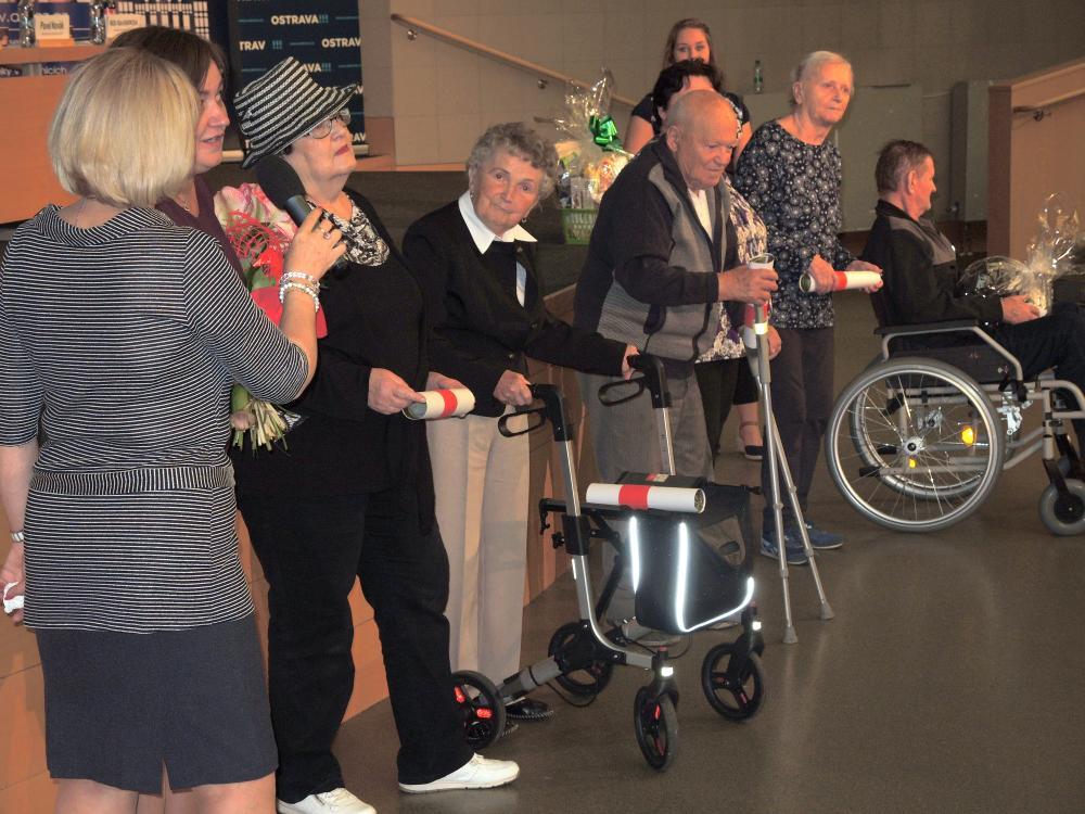 Cenu si osobně přebírali klienti domova: Milena SOKOLOVÁ, Helena HURTOVÁ, Pavel ZAPALAČ, František DOKOUPIL, v doprovodu dobrovolnice a rovněž spoluautorky Vlasty Březovské. Delegaci vítězů za organizaci reprezentovala ředitelka Mgr. Michaela Pavlůsková.